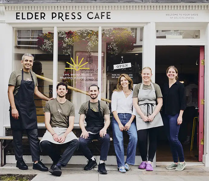 At the heart of our café is acclaimed founder-chef Lindsay Elder, whose culinary roots trace back to London’s iconic Books for Cooks – a beloved bookshop-turned-lunchtime haven where recipes came to life on the plate. Inspired by that unique blend of creativity and care, Lindsay brings the same spirit to the Elder Press kitchen: seasonal ingredients, global flavours, and soulful cooking, all guided by a deep love of great recipes and the stories they tell.